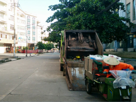 針對東興市國門城市的特點(diǎn),公司采用機(jī)械作業(yè)與人工作業(yè)相結(jié)合的模式。人工作業(yè)方面,城區(qū)每天早上8點(diǎn)鐘前,環(huán)衛(wèi)工人完成大掃,輪班保潔,直到晚上11點(diǎn)鐘。機(jī)械作業(yè)方面,公司采用高壓清洗車對東興市城西區(qū)域路段進(jìn)行清洗作業(yè),采用小掃路車對市區(qū)小街巷進(jìn)行清洗作業(yè),全天候人工與電動(dòng)三輪車巡回保潔,管理人員用電瓶車進(jìn)行巡檢督查。垃圾清運(yùn)則采用壓縮式收集車巡回收集城區(qū)各路段垃圾,采用5臺(tái)勾臂車對城西各區(qū)域100多個(gè)垃圾箱中垃圾進(jìn)行轉(zhuǎn)運(yùn),垃圾壓縮車對全城的垃圾桶中垃圾進(jìn)行循環(huán)收集,保證全城垃圾不落地。新型模式下的環(huán)衛(wèi)作業(yè)有效地提升了東興市國門城市形象及環(huán)衛(wèi)作業(yè)管理水平,受到業(yè)主單位及主管單位好評(píng)。