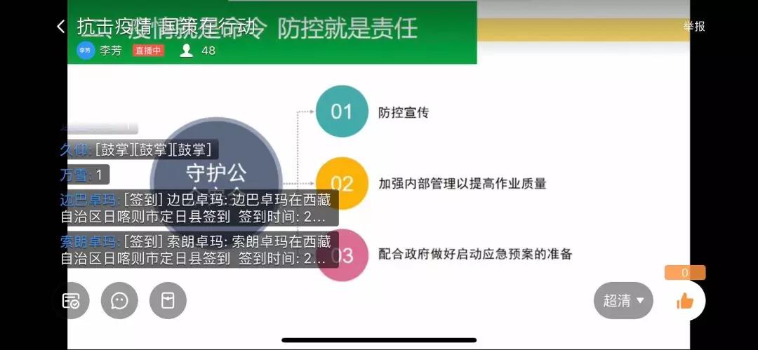 以“抗擊疫情,國策環(huán)保在行動(dòng)”為主題,公司防疫小組定期對各分公司管理人員展開了線上的直播宣傳,對疫情防護(hù)、管理進(jìn)行指揮安排。對奮戰(zhàn)一線的管理人員、工作人員表示贊揚(yáng)與鼓勵(lì)。在疫情攻堅(jiān)戰(zhàn)中,公司所有人員包括管理人員萬眾一心在特殊時(shí)期堅(jiān)守崗位,公司時(shí)刻與員工一同戰(zhàn)斗!