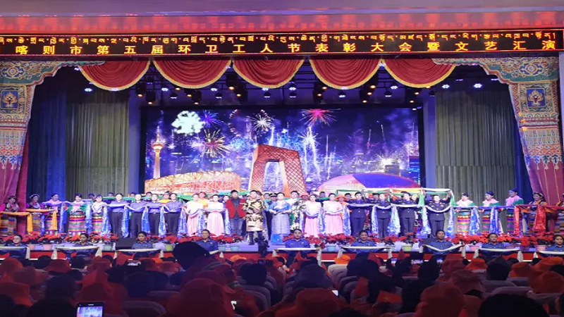 為慶?!碍h(huán)衛(wèi)工人節(jié)”這一個平凡而偉大的節(jié)日,鼓舞全體環(huán)衛(wèi)工人的士氣,10月26日晚,由日喀則市委、市政府主辦,市城市管理和綜合執(zhí)法局、市文化局承辦的主題為“頌現(xiàn)代化新西藏 展環(huán)衛(wèi)工新風(fēng)采”第五屆環(huán)衛(wèi)工人節(jié)表彰大會暨文藝匯演在日喀則市職業(yè)技術(shù)學(xué)院舉行,國策環(huán)保日喀則分公司作為參與方積極參與了此次活動。