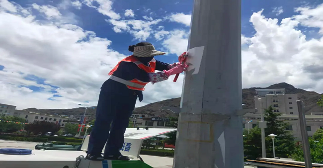 同時(shí),山南分公司還調(diào)配了15名員工、1輛高壓沖洗車、1輛灑水車、1輛洗掃車、1輛多功能沖洗車組成了體育場(chǎng)臨時(shí)清洗隊(duì),對(duì)體育場(chǎng)垃圾桶、電樁小廣告、周邊雜草以及地面等進(jìn)行了集中清理,通過(guò)采取高壓水槍沖洗和人工擦拭相結(jié)合的方式,體育場(chǎng)周圍環(huán)境及設(shè)施煥然一新,顯露“本色”。