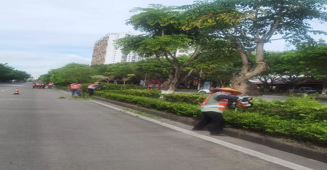 2、安排修剪人員對(duì)興東路、民族路、新華路、長(zhǎng)湖路、東盟大道、友好大道、北侖大道、高興大道、濱海大道、竹山進(jìn)港大道等綠化面積進(jìn)行修剪,統(tǒng)一修枝整形,出動(dòng)650人次、修剪綠化帶25條,清運(yùn)78車(chē)次,共修剪約14萬(wàn)平方米。