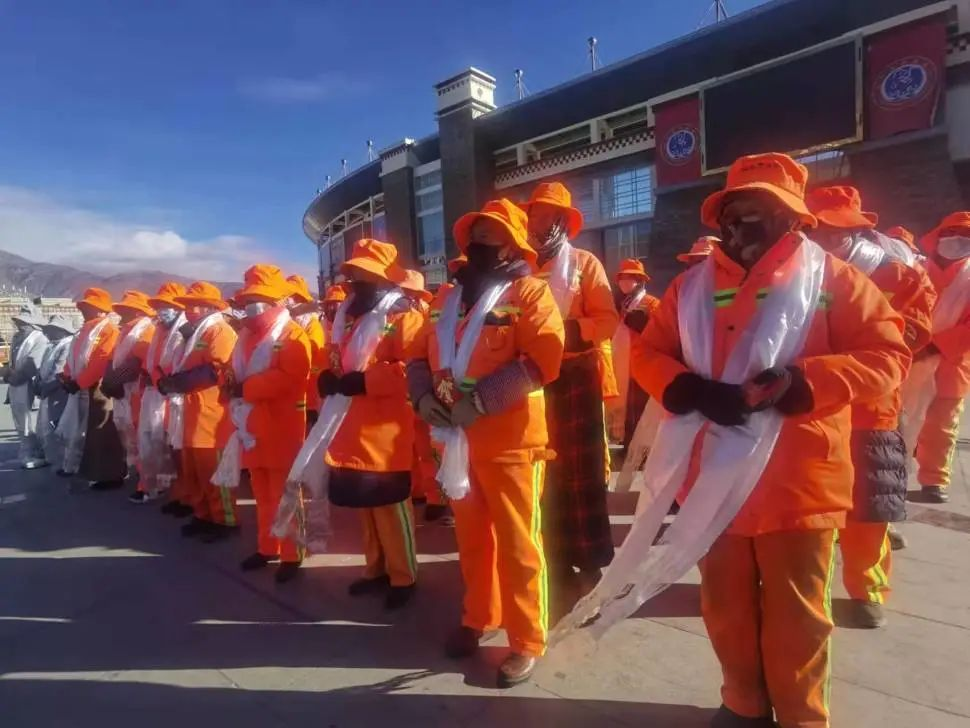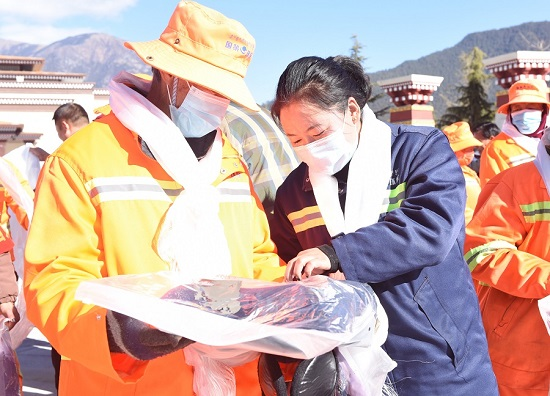 1月7日,為表達對國策一線環(huán)衛(wèi)工人的關懷和祝福,林芝市慈善總會在工布公園工布廣場開展了“寒冬送溫暖 致敬城市美容師”送冬衣活動?;顒蝇F(xiàn)場,市慈善總會工作人員為50名環(huán)衛(wèi)工人敬獻哈達,并送上慰問冬衣。