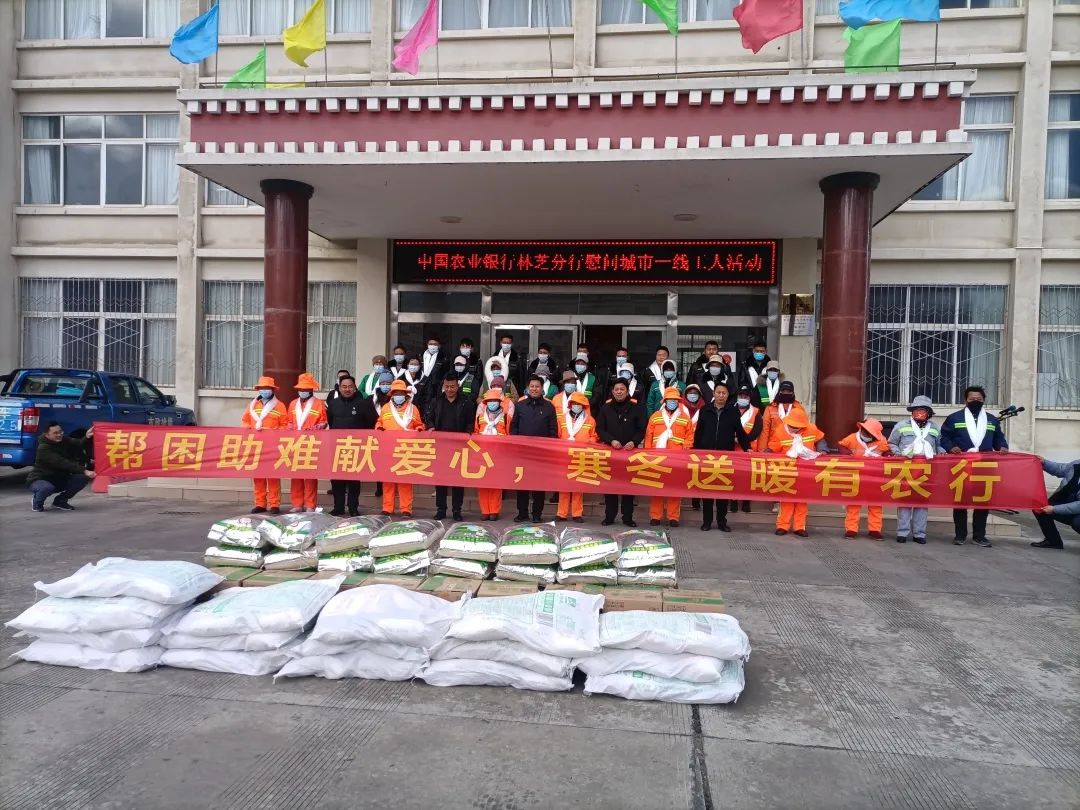 1月14日,中國農業(yè)銀行林芝分行在林芝市城市管理和綜合執(zhí)法局開展一線工人慰問活動。中國農業(yè)銀行林芝分行黨委書記、行長扎西達娃,黨委委員、副行長格桑次仁,中國農業(yè)銀行林芝分行辦公室、機構業(yè)務部相關負責人,林芝市城市管理和綜合執(zhí)法局黨組書記、副局長孟存軍,黨組成員、二級調研員周旭東,市城市管理和綜合執(zhí)法局辦公室、環(huán)衛(wèi)管理中心相關負責同志參加慰問活動。