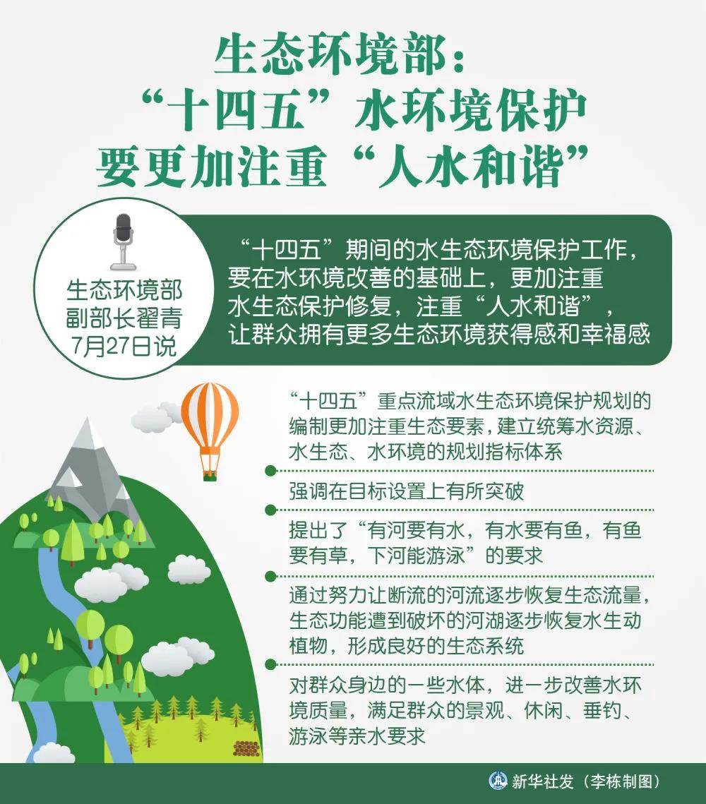 生態(tài)環(huán)境部副部長(zhǎng)翟青27日說(shuō),“十四五”期間的水生態(tài)環(huán)境保護(hù)工作,要在水環(huán)境改善的基礎(chǔ)上,更加注重水生態(tài)保護(hù)修復(fù),注重“人水和諧”,讓群眾擁有更多生態(tài)環(huán)境獲得感和幸福感。